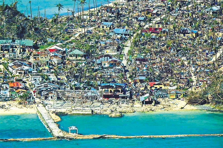 这是12月17日在菲律宾北苏里高省航拍的遭台风“雷伊”破坏的区域。