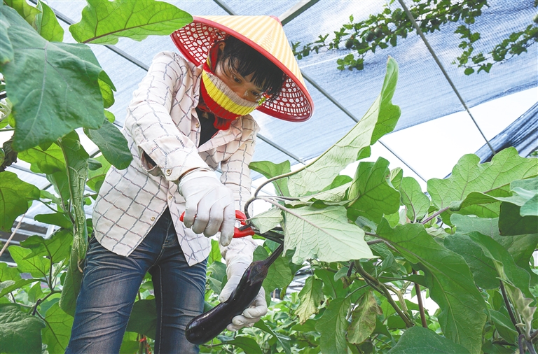 一排排蔬菜大棚内,品种丰富的蔬菜长势喜人,种植户正忙着收菜……这是海南日报记者在陵水新村镇桐海村菜篮子种植生产基地看到的景象。据悉,该基地占地800亩,于今年7月建成并投入使用。截至11月底,蔬菜产量累计达到119吨。