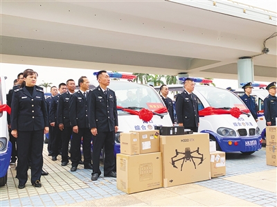 据介绍,此次海口市综合行政执法局共为全市执法系统配备执法巡逻车35辆、执法记录仪600套、执法无人机47台、执法对讲机150台、噪音检测仪100台等。下一步,海口市综合行政执法局将派技术人员上门对新配发执法装备的使用进行培训,让每位执法人员尽快熟悉装备,早日应用到具体执法工作中。随后,海口市综合行政执法局副局长宋佐与局系统11家执法单位的主要负责人签订了执法装备移交手续。