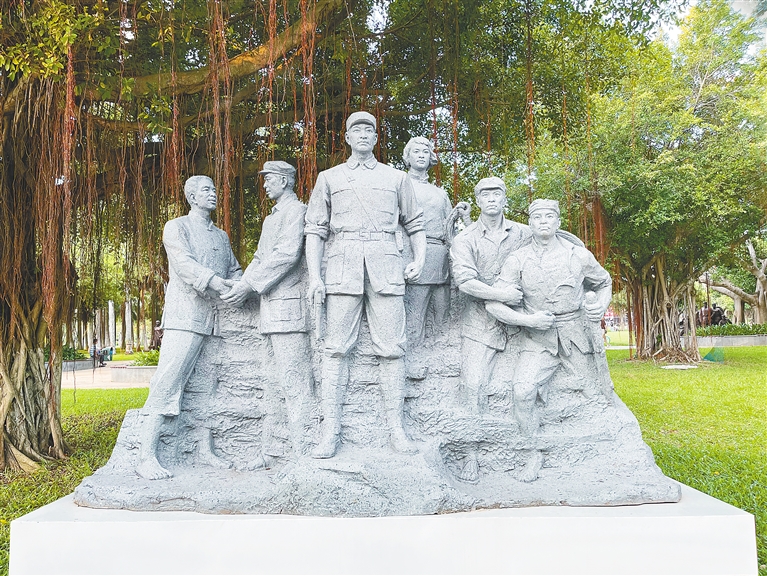 挺拔的身姿、刚毅的面容、坚定的眼神……此外,还有展示革命者光辉形象的《集义·德伦山》《解放海南》《琼崖纵队》等,其中每个群像雕塑的革命人物都饱含激情,似有一股蓬勃的力量向外迸发。他们的身上所共有的是对革命必胜的信念,以及在艰苦条件下前赴后继、舍生忘死的革命精神。