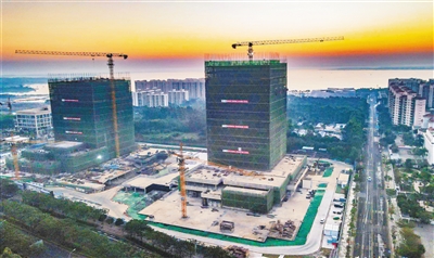 近日,洋浦经济开发区国际航运大厦项目有序推进。该大厦设计高度近百米,为两栋集行政、商务办公等为一体的多元化综合性大楼。目前,该大厦已完成基础结构和群楼主体结构施工,正在进行塔楼主体结构施工。项目建成后,洋浦国际航运大厦将成为洋浦地标性建筑和行政、商贸中心。本报记者 陈元才 摄