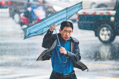②12月20日,琼海市民在风雨中出行。 特约记者 蒙钟德 摄
