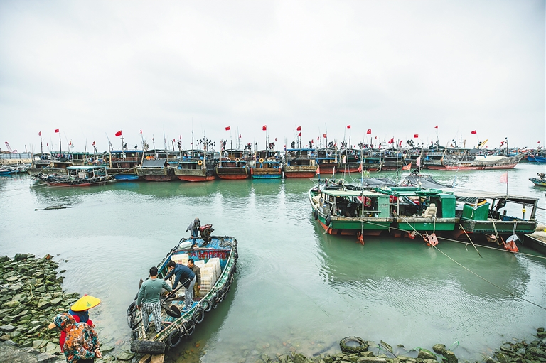 ③12月20日,东方市八所中心渔港码头停满渔船,全市546艘渔船全部回港避风。 通讯员 赵茜 摄
