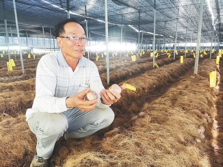 “第一年种了大约50亩,由合作企业提供技术及包销,共计收成1万多斤,每斤市场行情为50元至100元,一点都不愁销路!”符国华说。尤为让他感动且士气大振的是,自今年10月起,在有关帮扶部门及企业的支持下,菌菇种植基地也增至3个,室内大棚种植面积也增至160多亩。