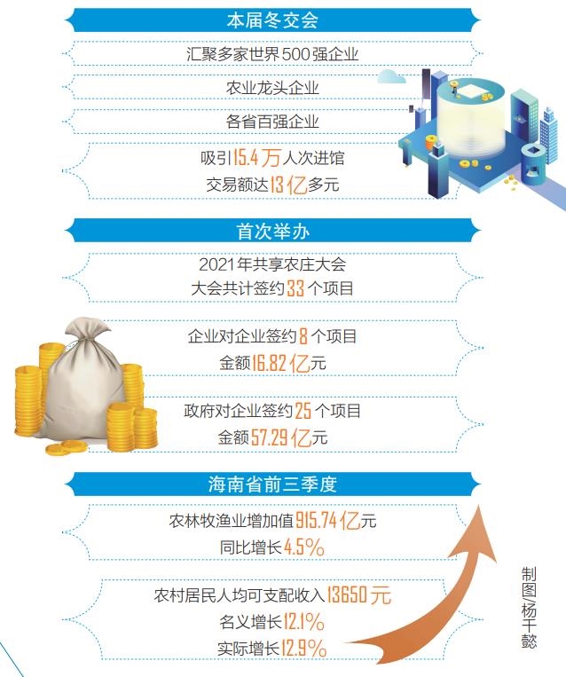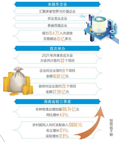今年的冬交会是脱贫攻坚取得全面胜利后的首届冬交会,以“巩固拓展脱贫攻坚成果、全面实施乡村振兴战略”为主题,持续促进海南农业与全国各地、“一带一路”沿线国家交流合作,见证了海南农业发展新成果,展现了乡村振兴新气象、新趋势。