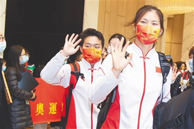 12月21日,内地奥运健儿访澳代表团结束了在澳门为期3天的交流活动。图为代表团成员王宗源(左)、吕扬在欢送仪式上。 新华社发