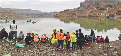 12月22日,救援人员在缅甸北部克钦邦帕甘玉石矿区事故现场开展搜救工作。