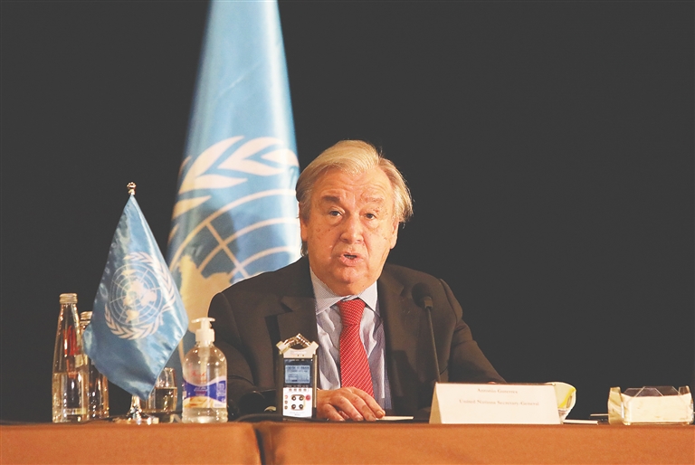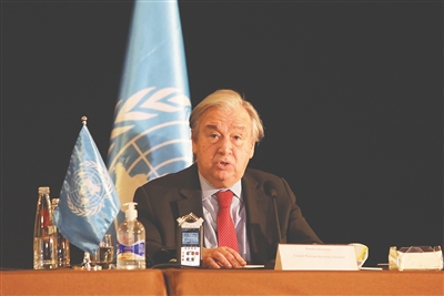 12月21日,联合国秘书长古特雷斯在黎巴嫩首都贝鲁特出席记者会。