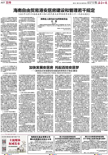 ~~~——《海南自由贸易港安居房建设和管理若干规定》解读