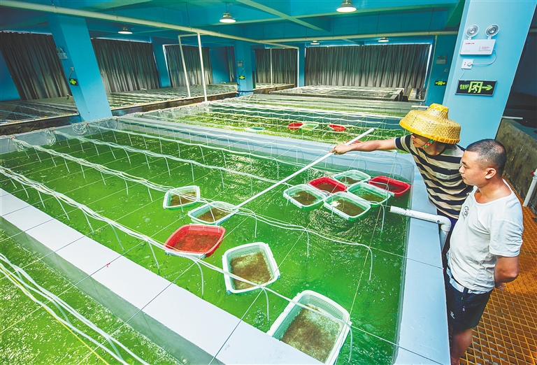 “瞧,这钢筋混凝土结构的厂房,不仅结实、抗台风,最要紧的是,园区统一规划养殖尾水处理,解决了生态环保问题,让我们养殖户没有后顾之忧。”心里曾有疑虑的水产养殖户曾广能,如今开始期待虾苗养殖“上楼”,让产业更上一层楼。