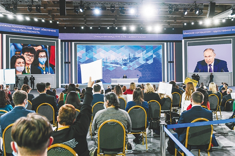 俄罗斯总统普京23日在莫斯科举行年度大型记者招待会,在近4个小时里回答了55个问题,涉及俄经济发展、新冠疫情、俄中关系以及俄与西方关系等问题。