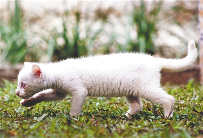 这是12月23日在哥伦比亚麦德林一家动物保护公园拍摄的据称患有白化病的细腰猫幼崽。据工作人员介绍,这只猫因缺乏保护色,难以在野外生存。新华社/法新