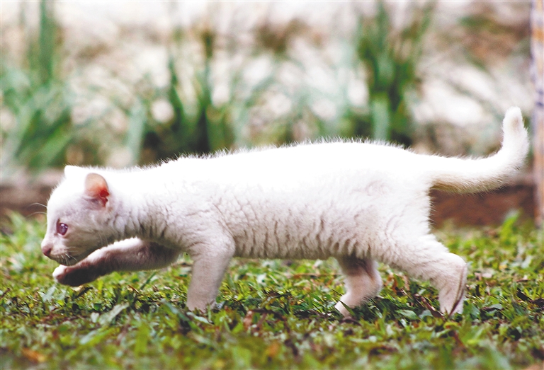 哥伦比亚:患白化病的细腰猫