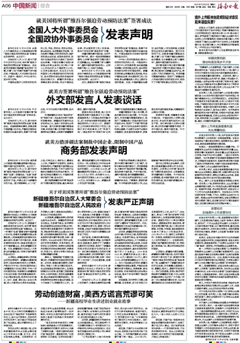 就美国将所谓“维吾尔强迫劳动预防法案”签署成法~~~