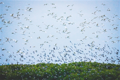 近日,大量过冬的候鸟飞来海口东寨港湿地栖息、觅食。本报记者 张茂 摄