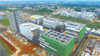 近日,俯瞰海口江东新区的金融中心项目。据了解,该项目将于下月实现整体竣工。