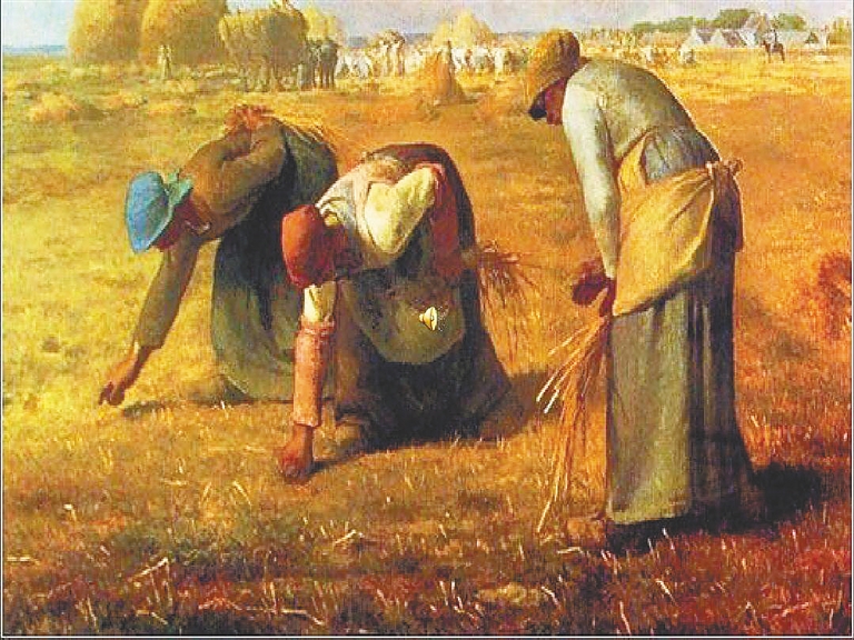 该画描绘了农村秋季收获后,人们从地里拣拾剩余麦穗的情景,该画人物形象真实生动,笔法简洁,色调明快柔和,凝聚着米勒对农民生活的深刻感受,是现实主义艺术风格的典型代表作。