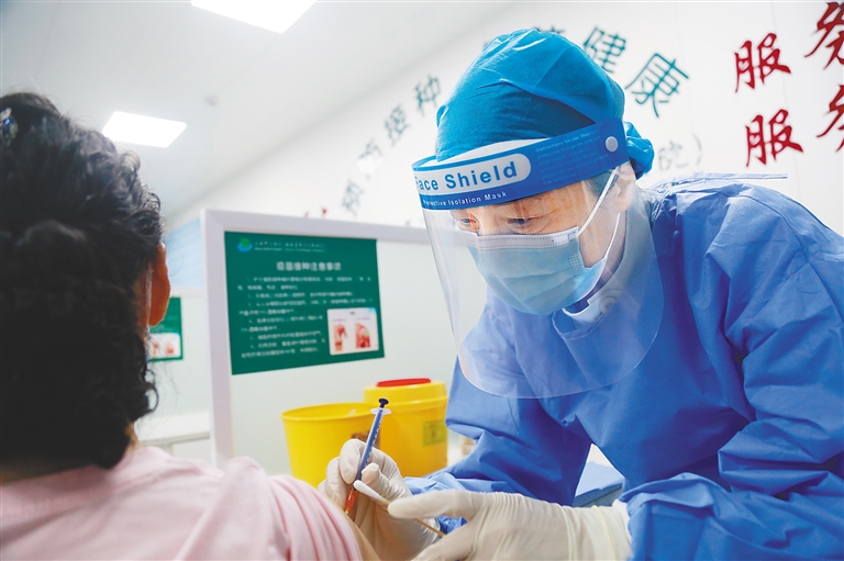 对像洪素华一样奋斗在接种一线的“种苗人”来说,虽然这一年多来每时每刻都沉浸在“战斗”模式中,但他们从不言苦、从不喊累,因为他们明白,这不是一个人的“战场”,也不是一个人一时的忙碌和辛苦,这是无数“种苗人”几百个日日夜夜同心协力、携手并肩在前行。与时间赛跑,拼尽全力为群众接种疫苗,就是为了能够早日构筑起群体免疫屏障。