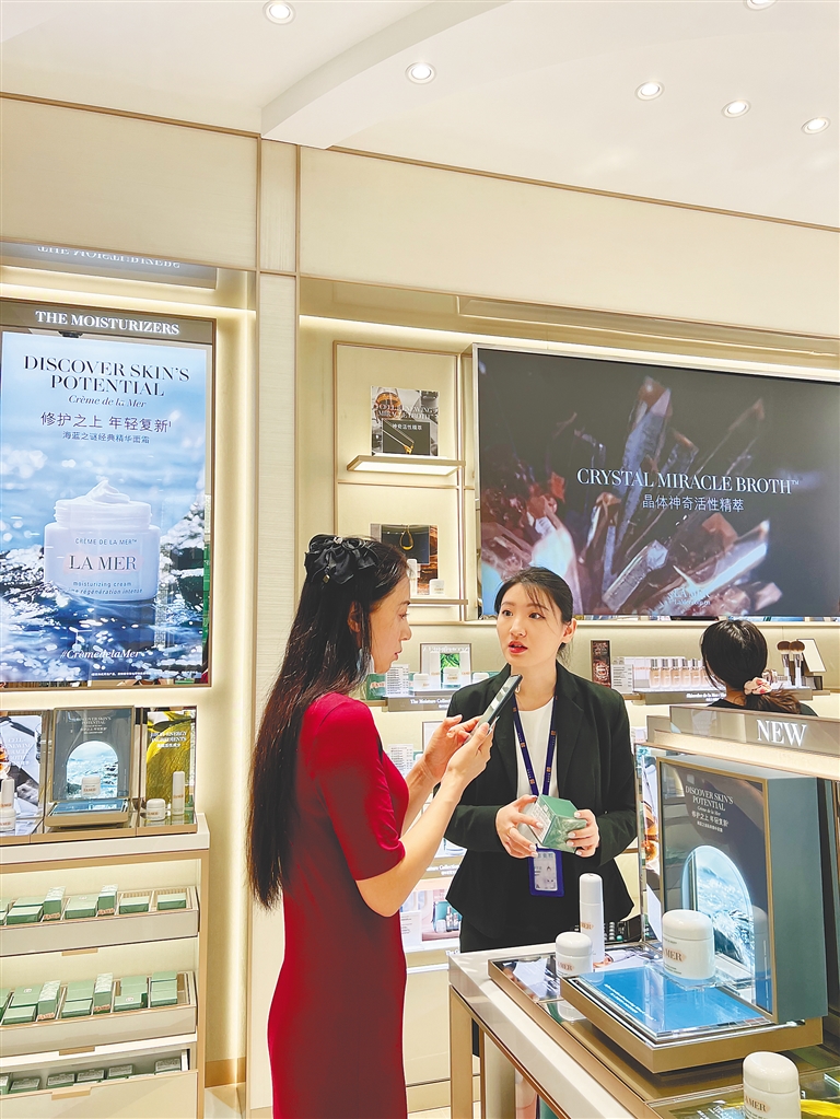 在忙碌的工作之余,她还抓住一切机会提升自己,比如参加三亚海旅免税城举办的培训,借助小红书等网络社交平台了解产品功效。