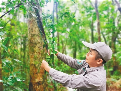 巡山路难走,一路上,韦宝权和同事们还得眼观六路、耳听八方:查看是否存在野外违法用火、乱砍滥伐、非法猎捕等行为,留心树木有没有出现病虫害。