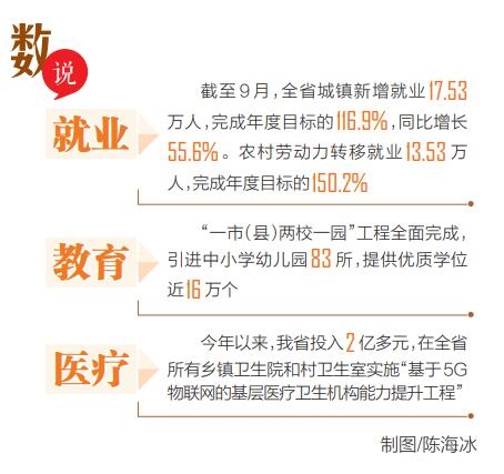 把关注点落在青壮年的就业上,稳住全省就业“基本盘”,截至9月全省城镇新增就业17.53万人,完成年度目标的116.9%,农村劳动力转移就业13.53万人,完成年度目标的150.2%;