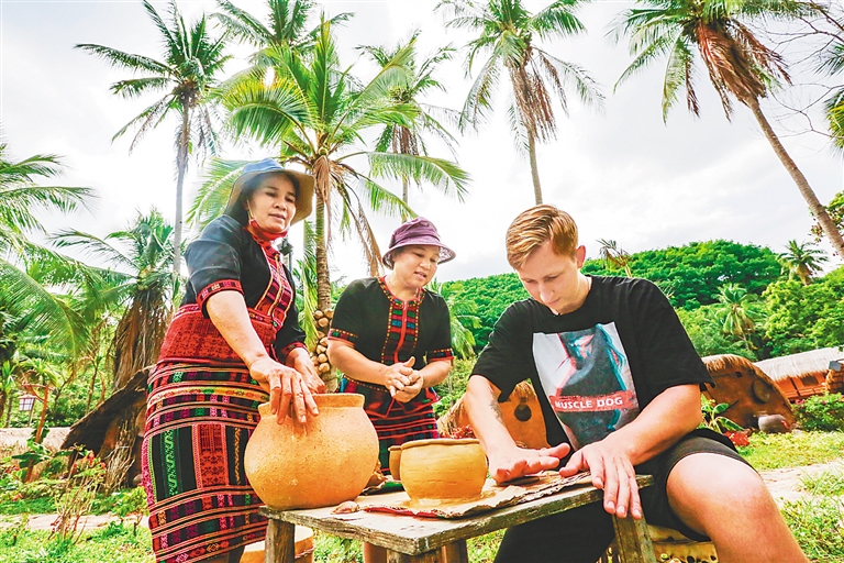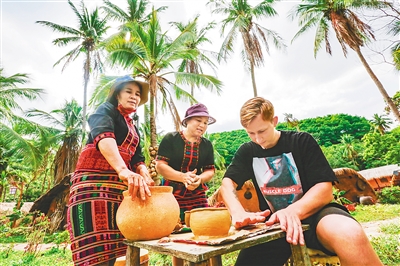 我们看到,白沙黎族自治县青松乡在“啦奥门”庆丰收山兰旅游文化节中,带着游客提起镰刀、背上竹篓,在古法收割体验中感受悠久的农耕文化;