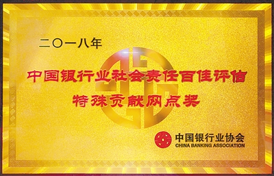 获评中国银行业社会责任百佳评估“特殊贡献网点奖”