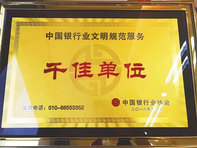 获评“中国银行业千佳网点示范单位”