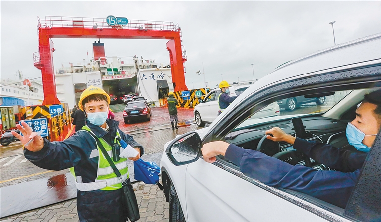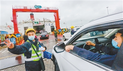 12月27日上午,在海口市新海港,旅客有序上船过海。当日,海口新海港、秀英港、铁路南港恢复通航。本报记者 陈元才 摄