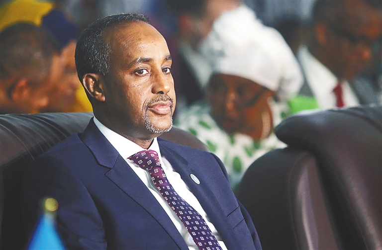 图为2021年5月27日,索马里总理罗布莱在摩加迪沙出席会议。新华社/路透