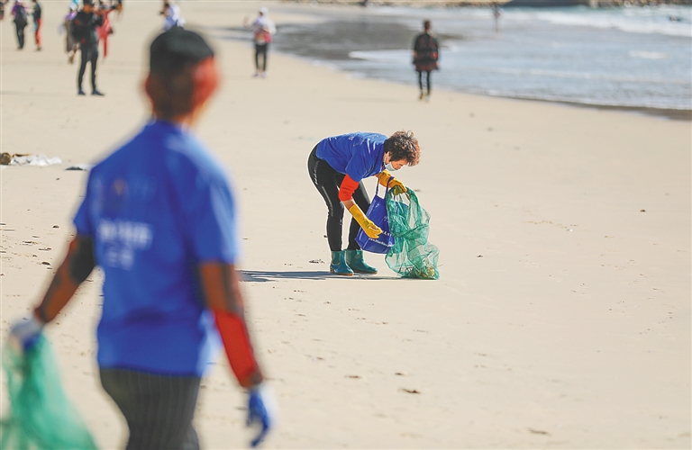 郑伍梅与另外4名社区居民,选择成为固定志愿者,参与到清理海滩垃圾和减少塑料污染行动中。“除5名固定志愿者外,社区妇联组织的妇女群众、社区约30家商户、在校学生以及游客也会加入我们队伍。”三亚市蓝丝带海洋保护协会活动宣传推广总监蒲冰梅说,周边居民及游客参与度不断提高,环保理念愈来愈强。