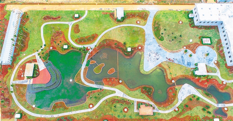 近日,俯瞰海口江东新区地埋式水质净化中心一期工程项目。目前,该项目已完成试运营并正式投入使用。相比传统地上污水处理厂,地埋式水质净化中心节约土地,降低对居民生活的影响。本报记者 张茂 摄