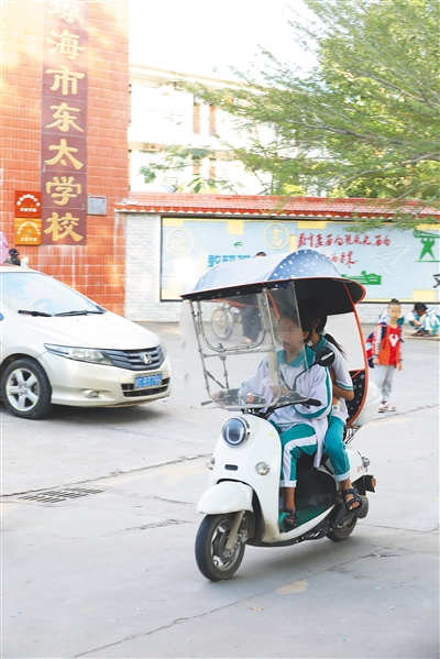 下午放学后,校门缓缓打开,两名学生出了校门后,快步走到附近一家商铺门口,骑上停放在此的电动自行车,在行车道上左突右冲、嬉笑打闹。半小时内,像他们一样骑着电动自行车离校的学生不下10人……这是海南日报记者近日在澄迈县昆仑学校见到的一幕。