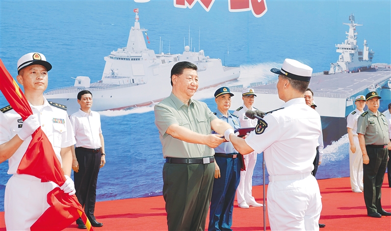 “习主席亲临仪式现场,亲切接见一线官兵,充分体现了对海军转型建设的高度重视,对新质战斗力建设的格外关注,对海军官兵的关心厚爱。”海南舰舰长闾勇军说,作为新型战舰的第一任主官,深知责任重千钧,一定做到边训练、边备战、边建设,加速推动新质战斗力生成。