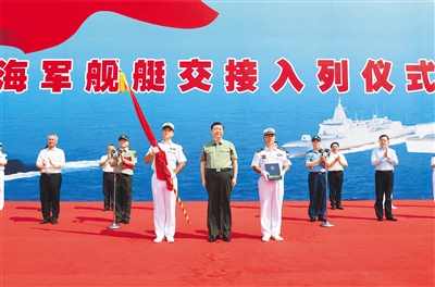 中央和国家机关有关部门、军委机关有关部门、海军、海南省以及舰艇科研生产单位的负责同志参加交接入列仪式。