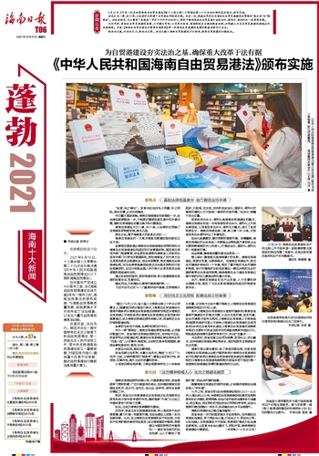 | 海南日报 蓬勃2021 海南十大新闻 030 2021-12-311 2021年12月31日 星期五 |