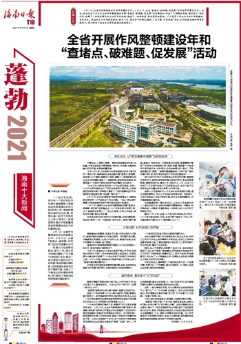 | 海南日报 蓬勃2021 海南十大新闻 034 2021-12-311 2021年12月31日 星期五 |