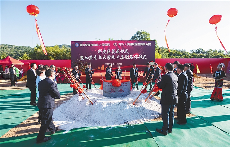本报海口1月6日讯 (记者马珂 实习生王菲文)1月6日,陵水黎族自治县人民医院(青岛大学附属医院海南分院)新院区奠基仪式暨加盟医疗集团签约仪式在黎安镇举行。据了解,该项目将建成一座集医疗救治、健康体检、科研教学、预防保健,医养康复及公共卫生应急于一体、具有三级医院水平的现代化综合医院。