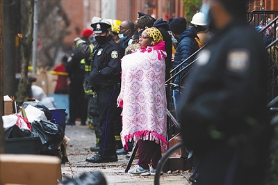 1月5日,人们在美国宾夕法尼亚州费城公寓楼火灾现场围观。