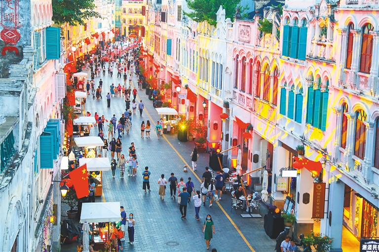 1月10日,首批55个国家级旅游休闲街区名单经评审出炉,并开始公示,海口市骑楼建筑历史文化街区榜上有名。图为去年海口骑楼老街举行的沉浸式数字光影展。图/本报记者 张茂 文/本报记者 傅人意 赵优 通讯员 李艺娜