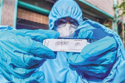 1月10日,在菲律宾奎松城,医务人员展示新冠病毒抗体呈阴性的检测结果。