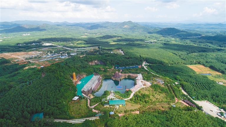 把矿山生态修复而来的风景变成产业,让景色转化成生产力。石向荣介绍,按照“生态优先、绿色发展”理念,海垦旅游集团把莲花山破碎山体修复,纳入旅游开发的整体规划中结合矿山修复和综合治理成果,以发展“绿色经济”为原则,融入文化内涵进行旅游景点建设,打造多彩业态,实现山体修复和旅游产业发展双赢。