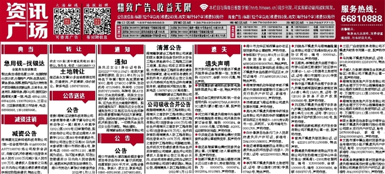 ●魏德遗失海南新佳旅业开发有限公司开发的海南三亚半山半岛钓鱼台•美高梅1-2308房收据两张,编号:XJ0003685,金额:100000元;编号:XJ0003686,金额:5893757元,声明作废。
