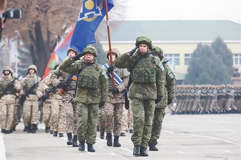 集体安全条约组织(集安组织)秘书长扎斯13日在阿拉木图市宣布,集安组织维和部队从即日起开始撤离哈萨克斯坦,并于10日内完全撤出。哈方当天在阿拉木图市为集安组织维和部队举行送行仪式。新华社发