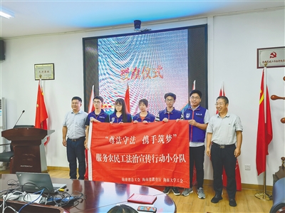 省总工会相关负责人表示,要充分发挥工会组织健全、维权律师专业特长、广大青年学生的工作热情等,加大农民工法律宣传和维权工作力度,促进劳动关系和谐稳定,不断增强广大农民工的获得感、幸福感、安全感,实干担当扎实开展“尊法守法·携手筑梦”服务农民工公益法律服务行动,为加快建设海南自贸港营造和谐稳定社会环境与良好法治环境创造条件。