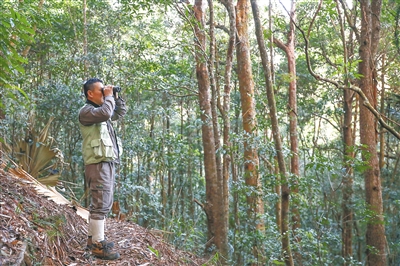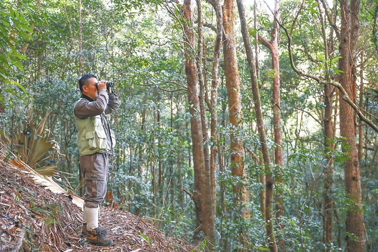 “最近这些年,政府陆陆续续种了数万株海南长臂猿喜食的乡土树种。现在小家伙们活动范围越来越大,我们的监测工作也越来越难做咯。”尽管嘴上“抱怨”着,他的眼角眉梢却分明流淌着笑意。