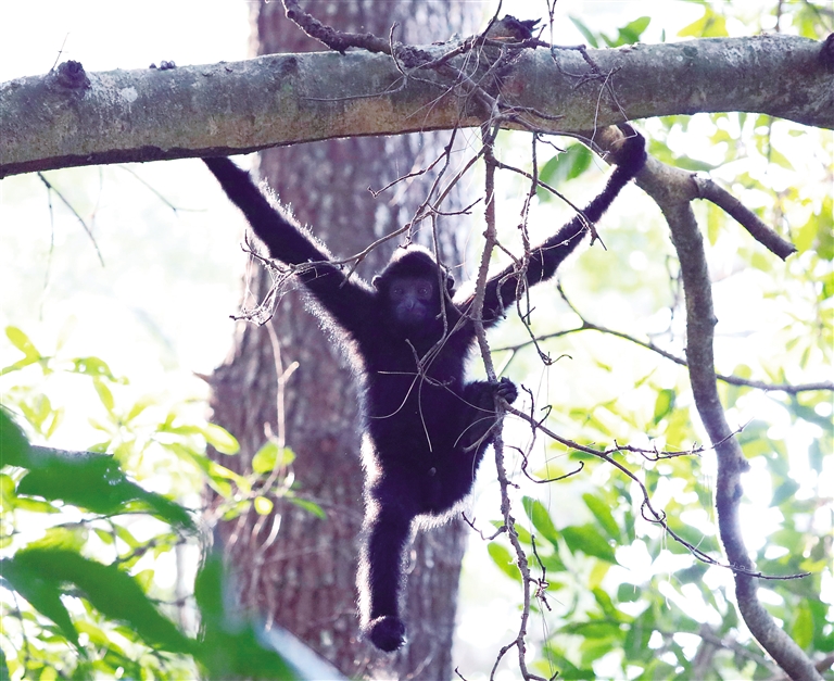 “海南长臂猿尤其是成年雄猿鸣叫的声音结构,是所有长臂猿种类中最简单的。”周江认为,这或许可以佐证“海南长臂猿是所有长臂猿中最原始的一种”这一观点。