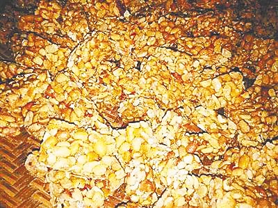 定安县下田村八旬老人徐家昌回忆,村里有条件的人家常在腊月二十七、二十八开始做“筐粑”,也就是人们常说的年糕。“筐粑”的做法,一般是用浸过的糯米(有的加少量的粳米)加水磨成浆,滤去多余水分,捏成小圆条,放入大锅中,加适量红糖或白糖和清水,煮熟时用两根木棍伸进锅内搅拌均匀。待熟透成胶糊状,倒进扁形竹筐内,放凉后可用白线切割,邻里间相互赠送。“‘筐粑’放置几天会逐渐干硬,还可切成薄块油煎后吃。”徐家昌说。