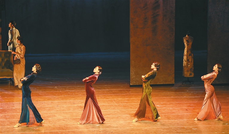 作为一部爆款红色舞剧,《永不消逝的电波》巧妙地运用空间的变化、大胆的设计和敏感的捕捉,完美展现了当代舞蹈美学创作的匠心精神。其中广为称道的群舞,便是婉约优雅的“旗袍蒲扇舞”。