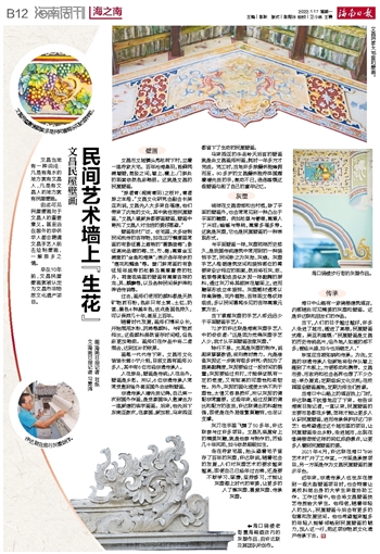 画笔一代代传下来。文昌市文化馆馆长曾小宁介绍,目前文昌有画师30多人,其中有6位市级非遗传承人。